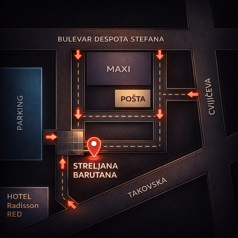 Linijama javnog prevoza 58, 32E, 16, 35, 95, 27E, 43. Autobuska stanica je udaljena 150 metara od streljane.